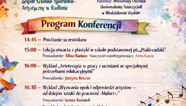 Organizatorzy, miejsce konferencji: Zespół Szkolno-Sportowo-Artystyczny w Radlinie